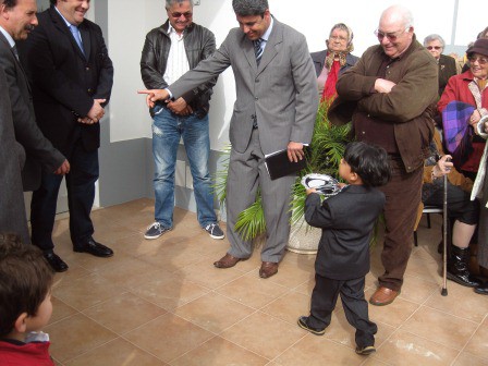 Página inicial > Galeria de Fotos > João Vitor, leva a tesoura para cortar a fita.JPG